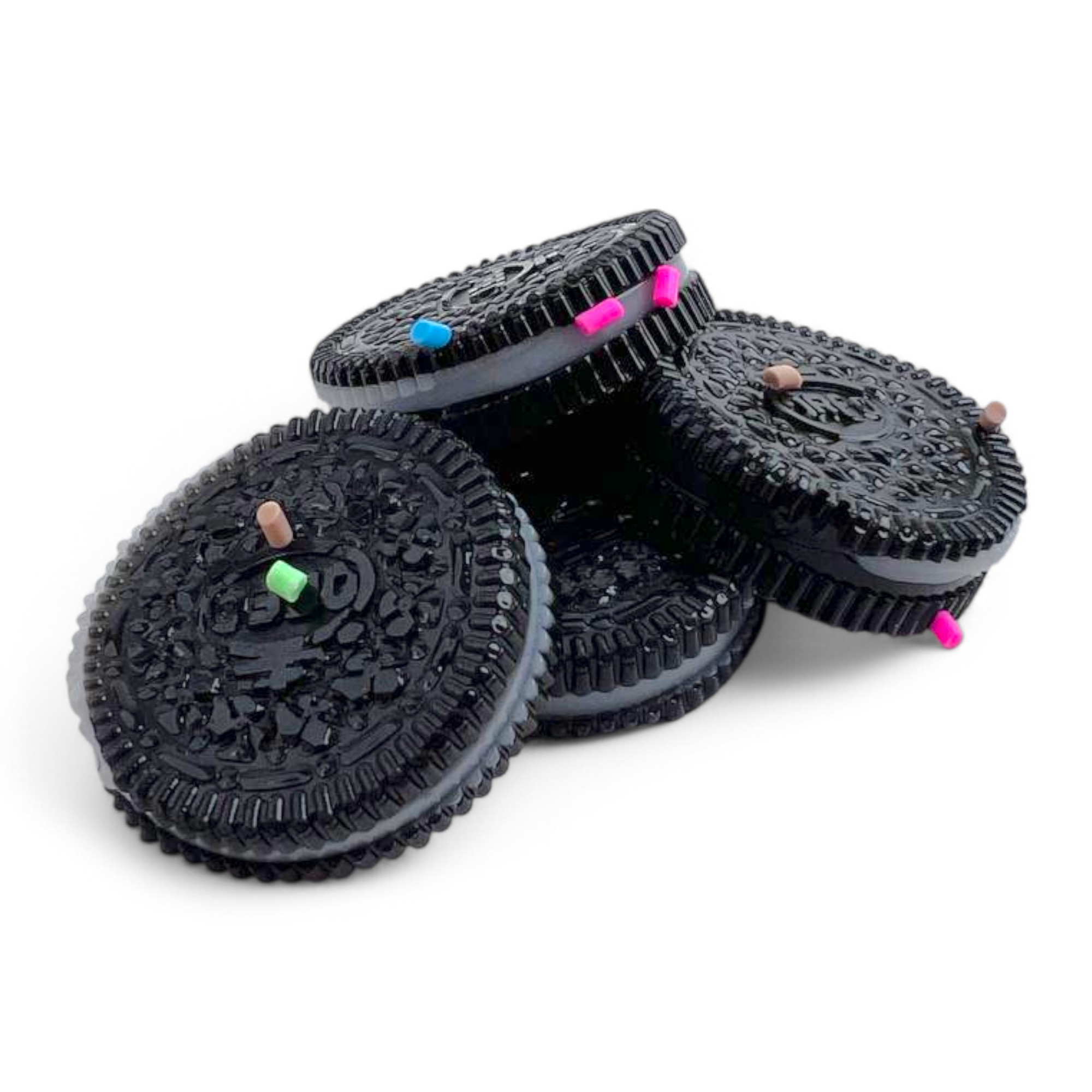 Сквиш выполнен в форме объемной печеньки Oreo, доступен в стильных розовом, голубом, сиреневом, желтом и темно-коричневом цветах. Диаметр игрушки составляет 3,8 см, что делает ее удобной для держания в руках. Эта игрушка станет отличным средством для снятия стресса как для детей, так и для взрослых.