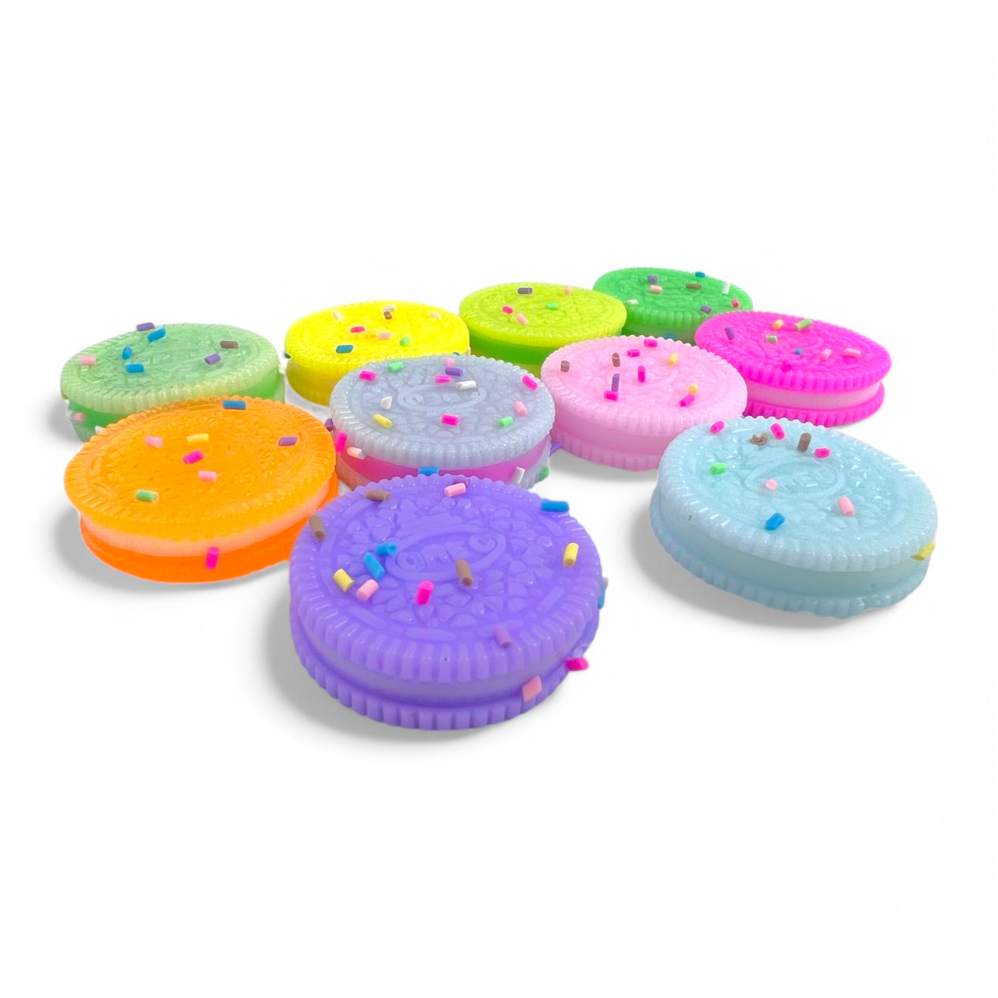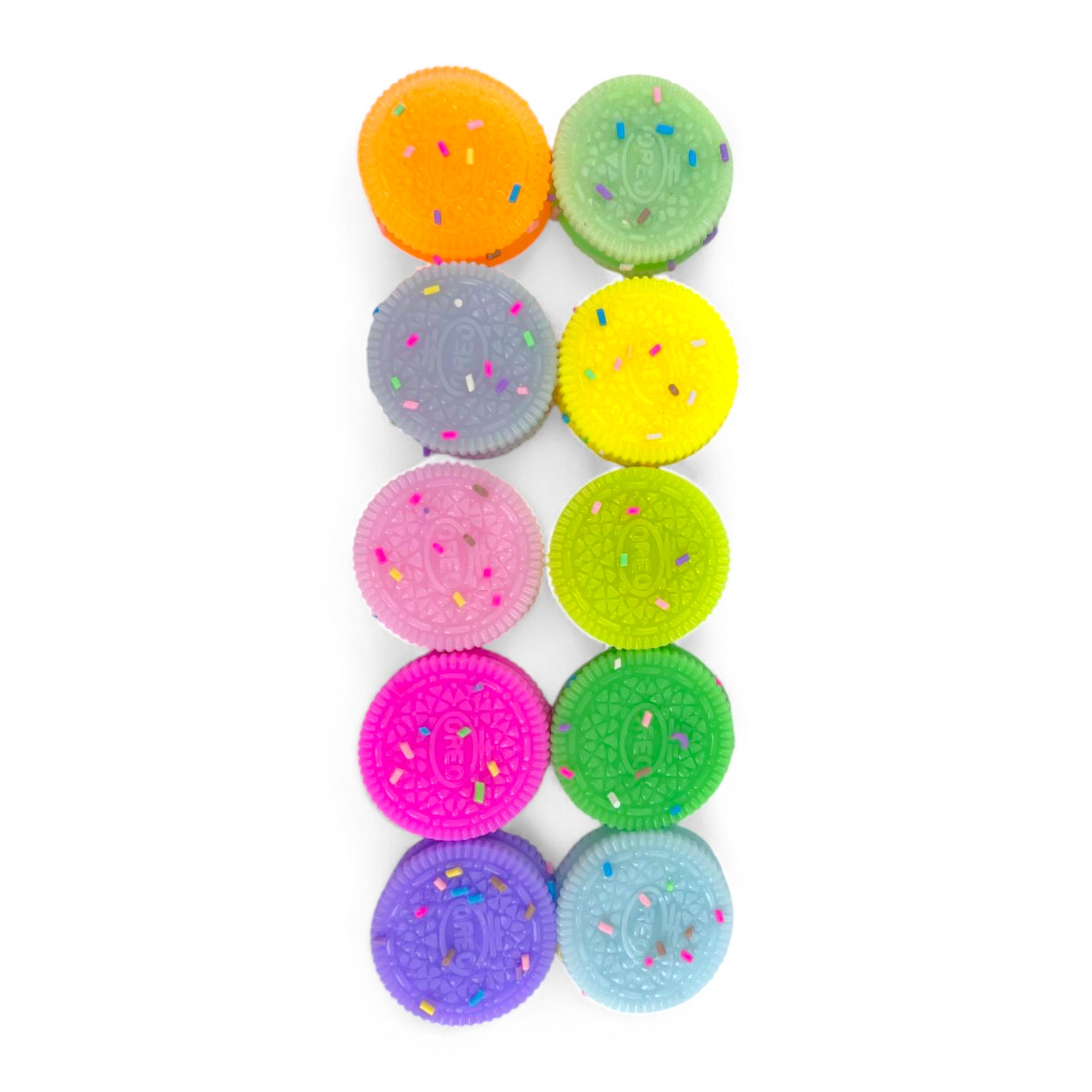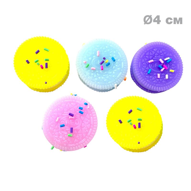 Сквиш выполнен в форме объемной печеньки Oreo, доступен в стильных розовом, голубом, сиреневом, желтом и темно-коричневом цветах. Диаметр игрушки составляет 4 см, что делает ее удобной для держания в руках. Эта игрушка станет отличным средством для снятия стресса как для детей, так и для взрослых.