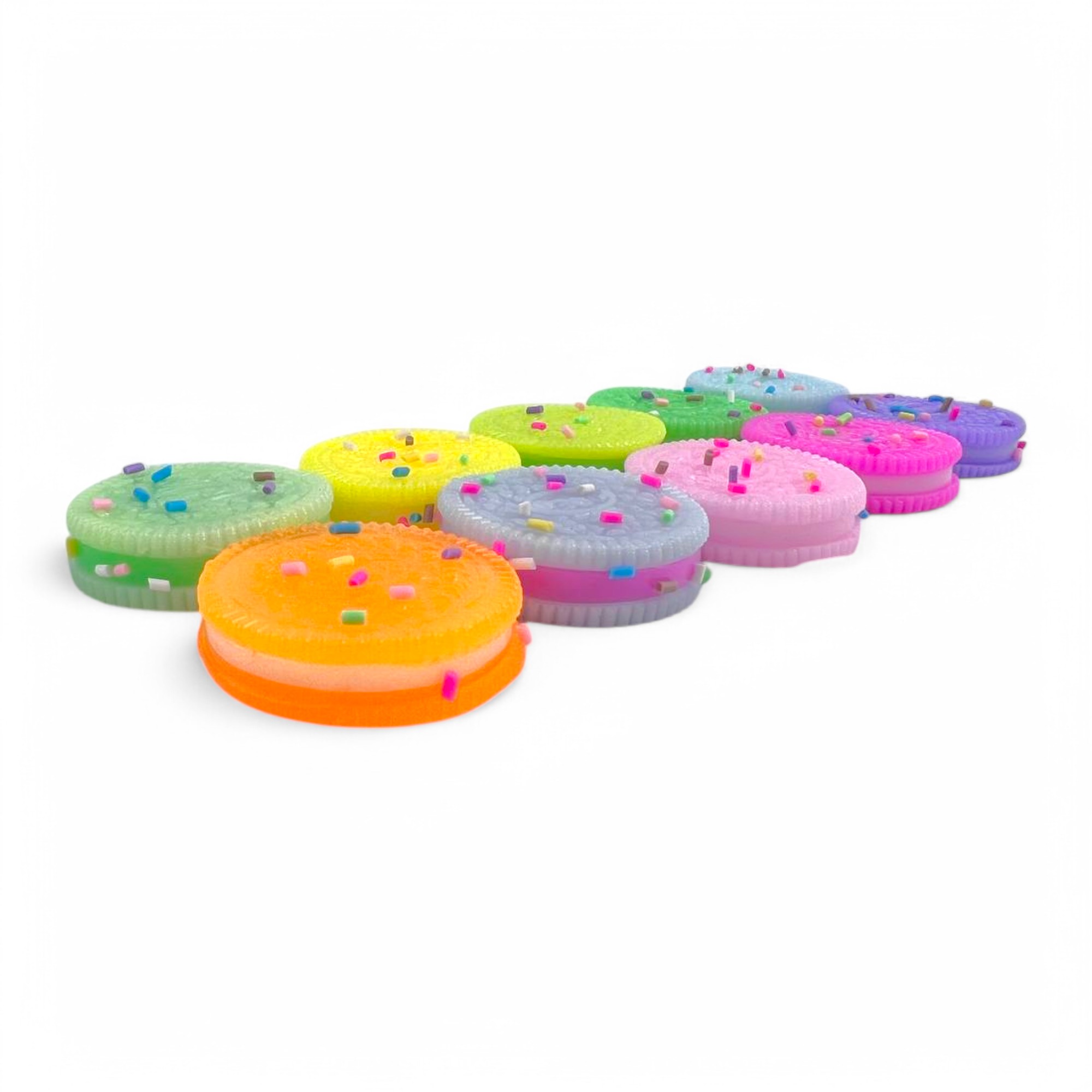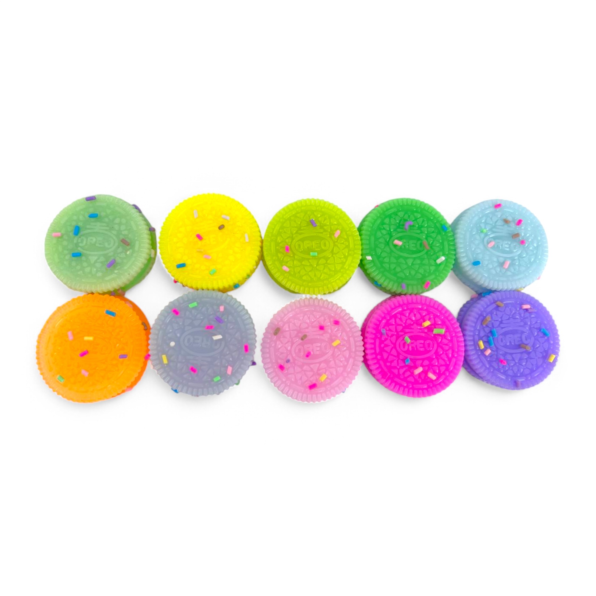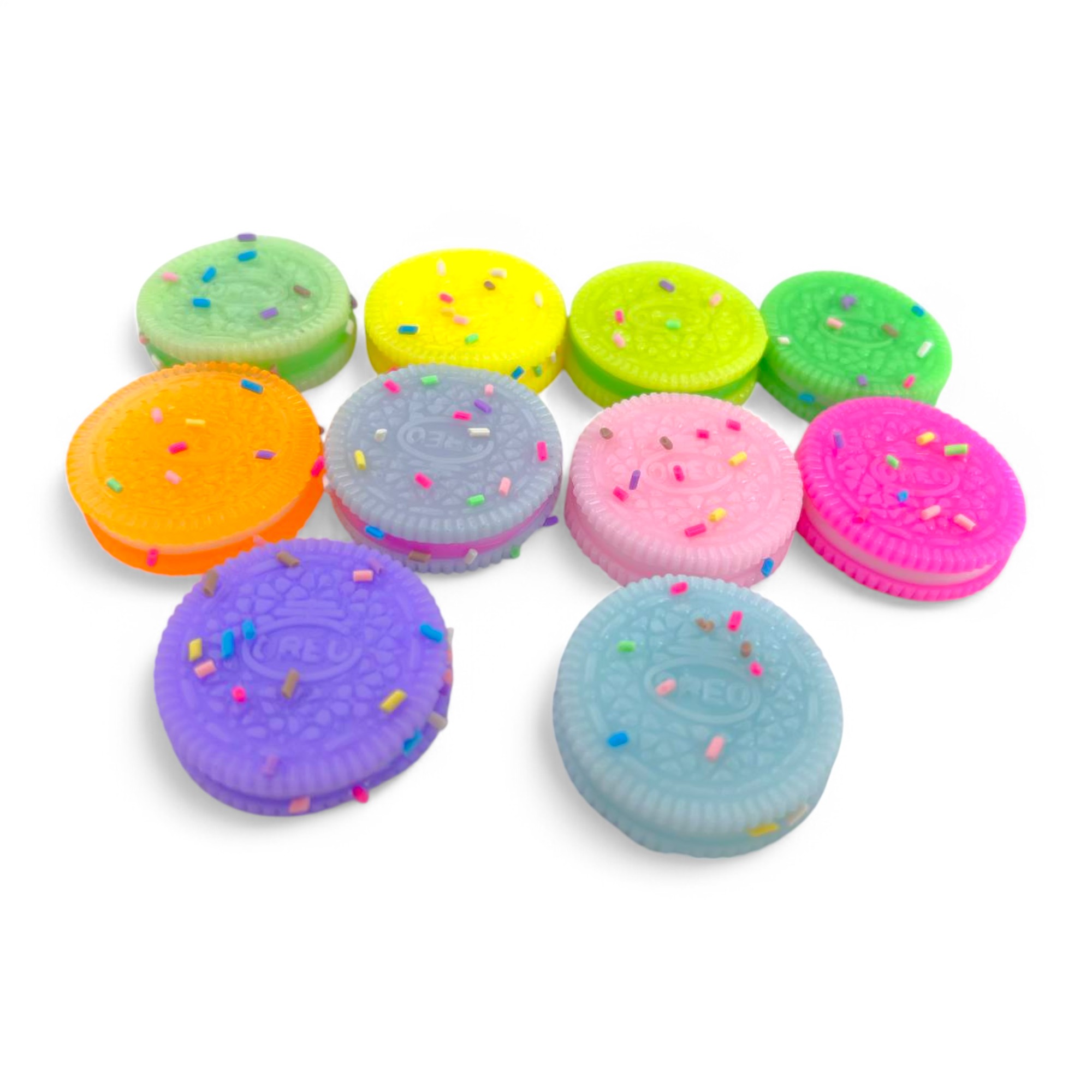Сквиш выполнен в форме объемной печеньки Oreo, доступен в стильных розовом, голубом, сиреневом, желтом и темно-коричневом цветах. Диаметр игрушки составляет 4 см, что делает ее удобной для держания в руках. Эта игрушка станет отличным средством для снятия стресса как для детей, так и для взрослых.