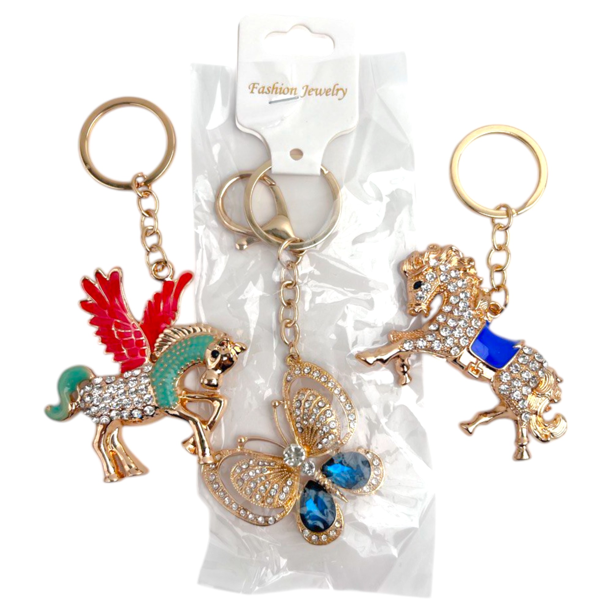 Брелки в ассортименте (животные, насекомые, змеи и пр.) со стразами.
