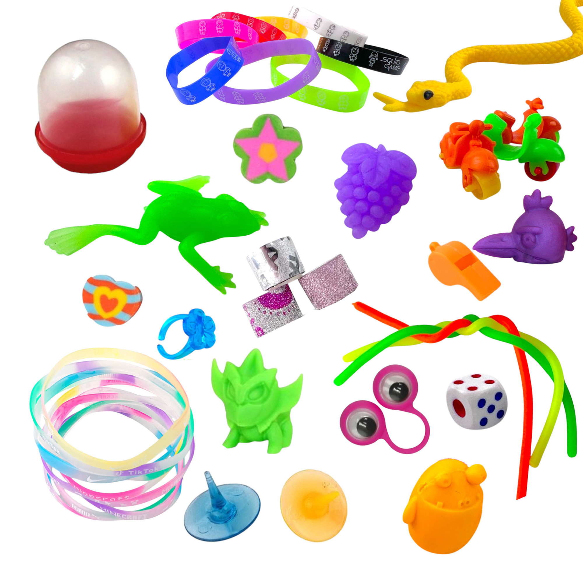 В наборе разнообразные игрушки для мальчиков и девочек: ластики, магниты, тянучки, кристаллы, машинки, растишки, колечки. Микс подойдет для малых и средних торговых автоматов. Пользуется популярностью в любой сезон у школьников и не только...