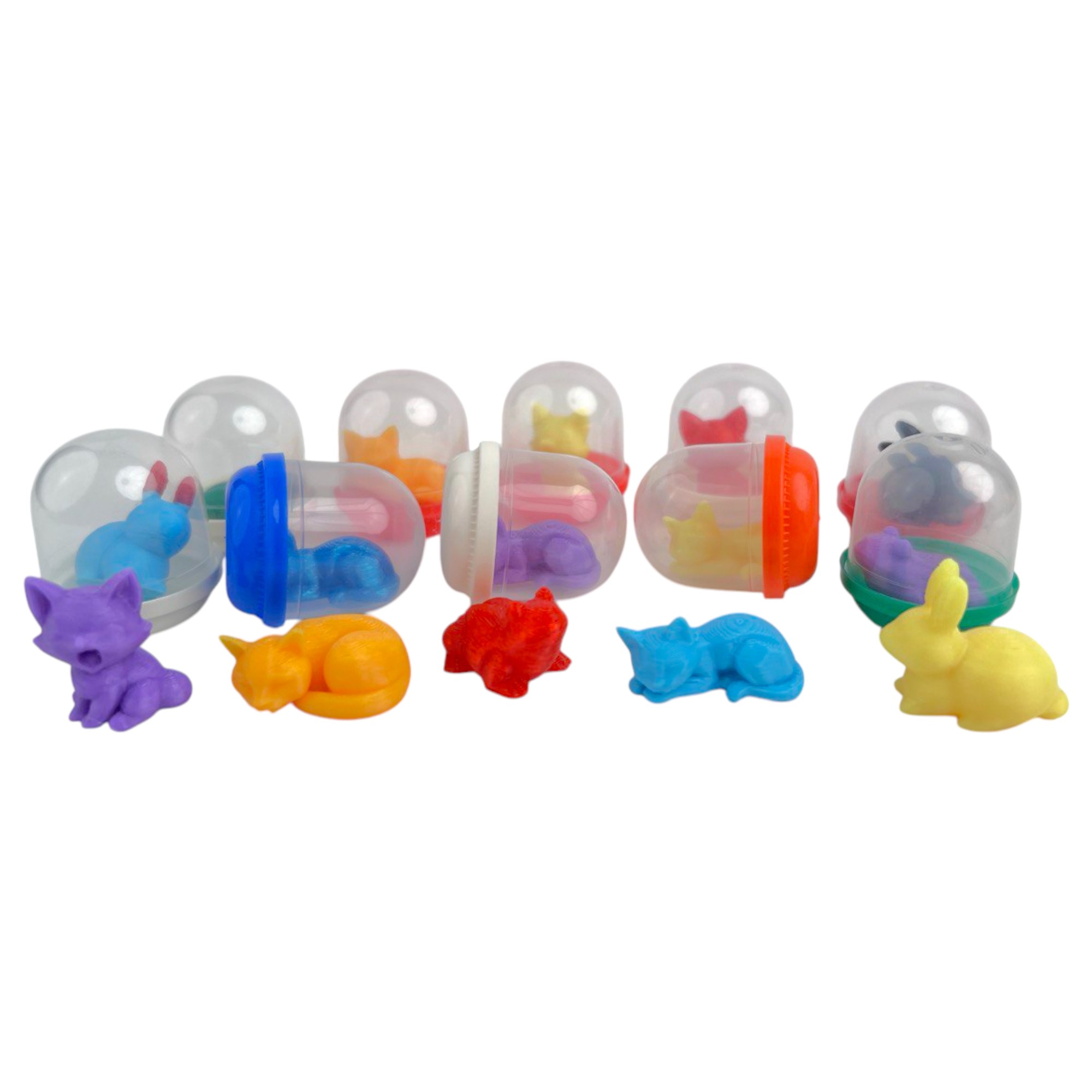 Игрушки упакованные в прозрачные капсулы диаметром 28 мм с цветными крышками 250шт/уп.