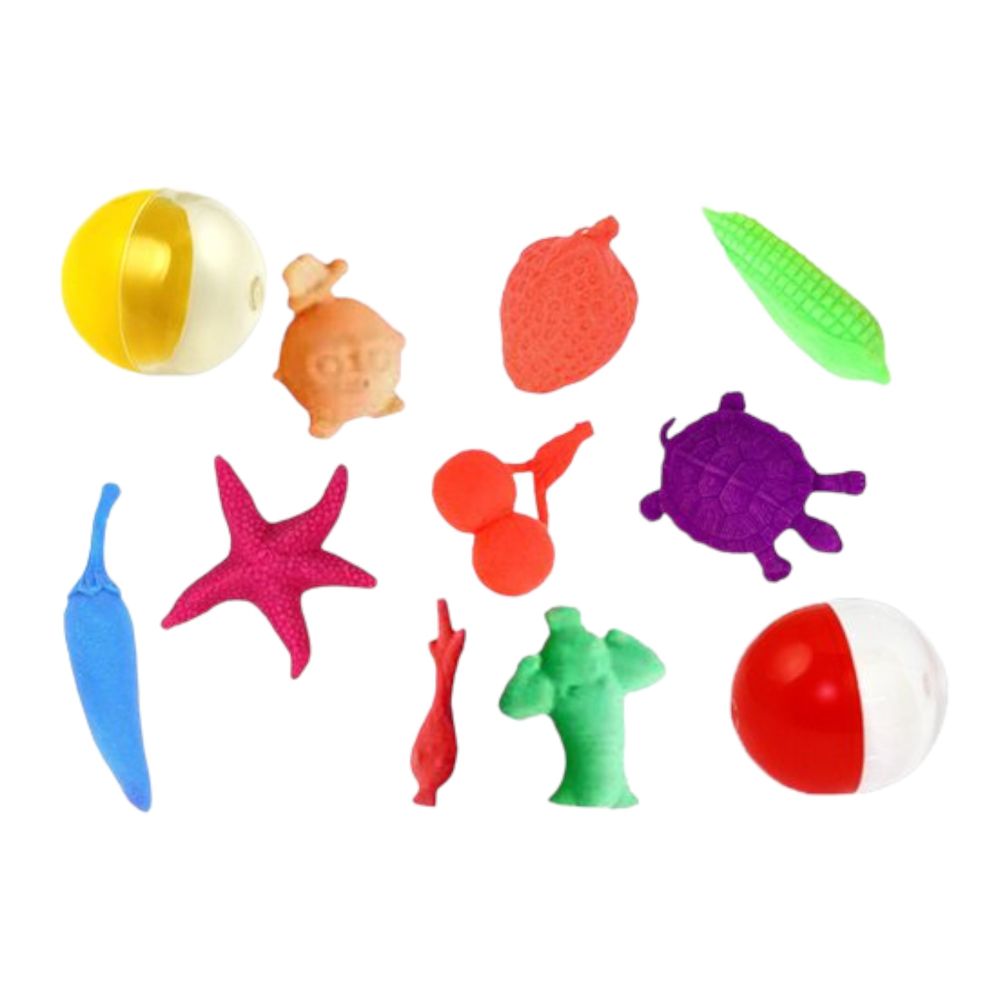 Игрушки упакованные в капсулу диаметром 34х30 мм мм с цветными крышками 250шт/уп.