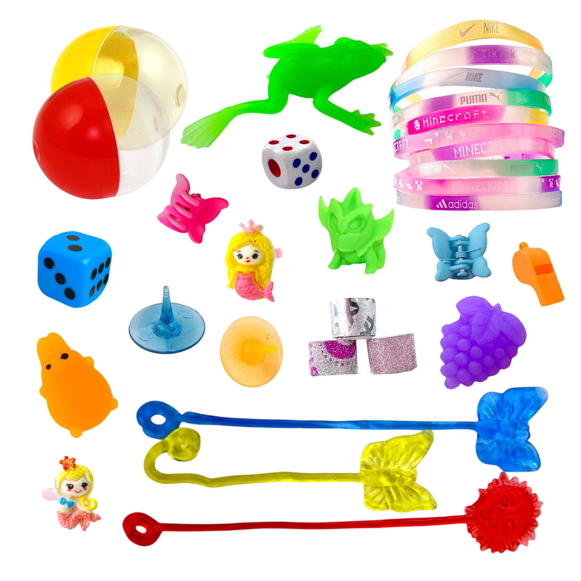 Игрушки упакованные в прозрачные капсулы диаметром 34х30 мм с цветными крышками 250шт/уп.