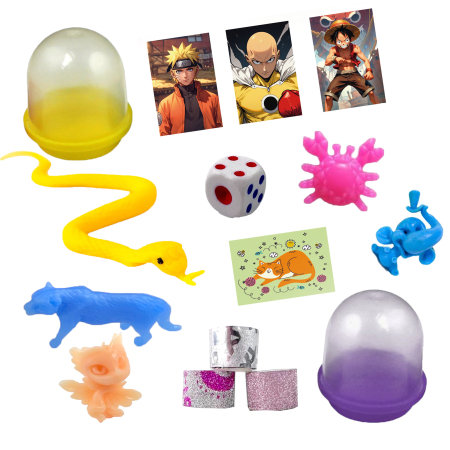 Микс игрушек собран из самых продаваемых наполнителей. В каждой упаковке вы найдете тянучки, ластики, магниты, колечки, фигурки, игральные кости и даже зубастиков. Для ваших юных покупателей каждая игрушка станет маленьким сюрпризом.
