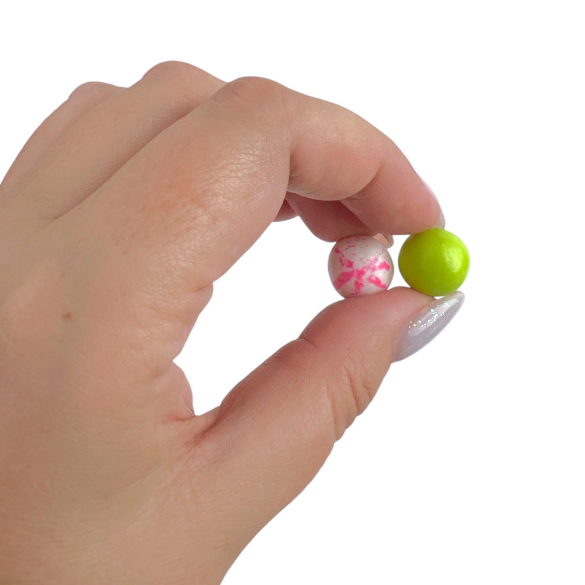 Диаметр 12-14 мм, допустимы отклонения от размеров (диаметра) шарика жев.резинки до 1 мм.