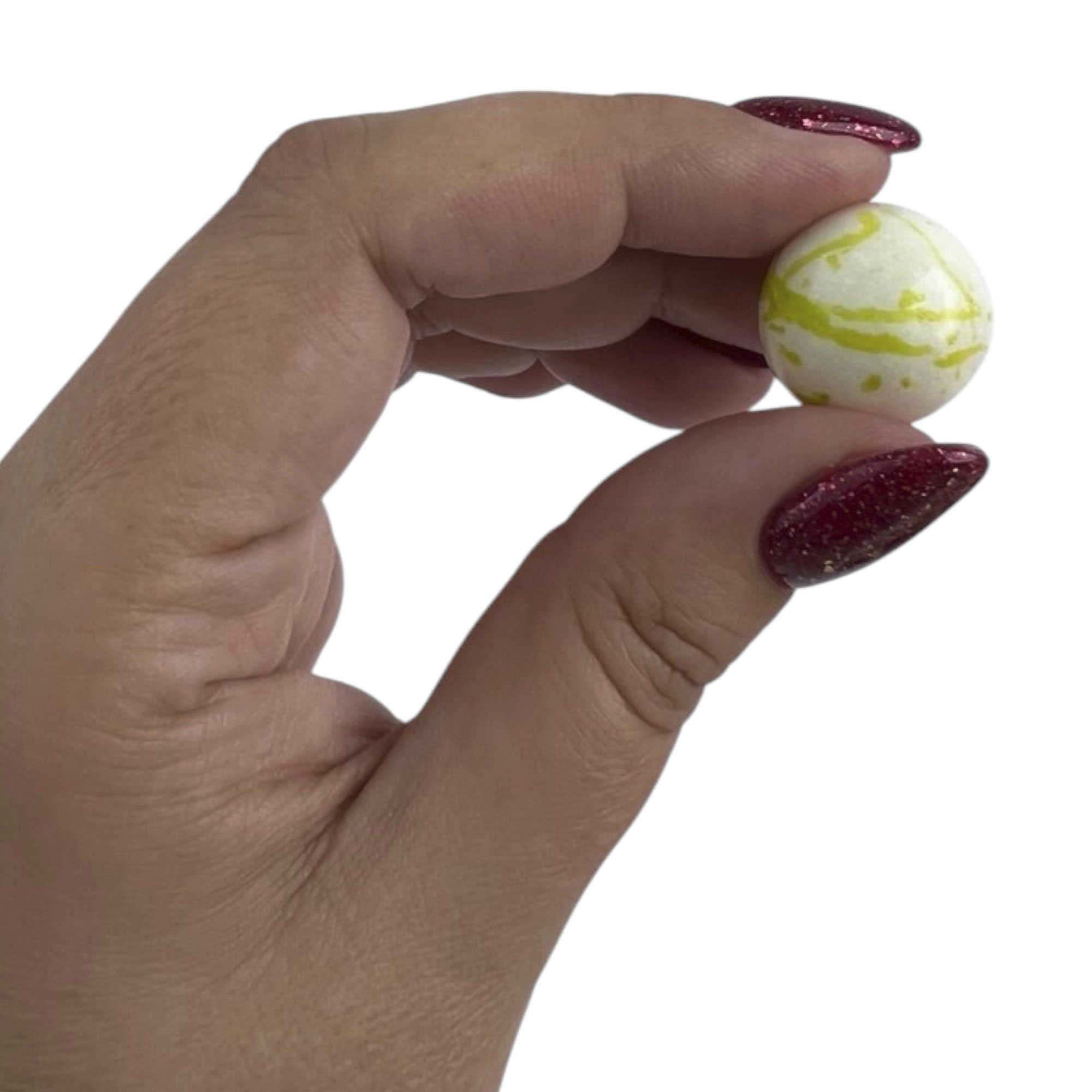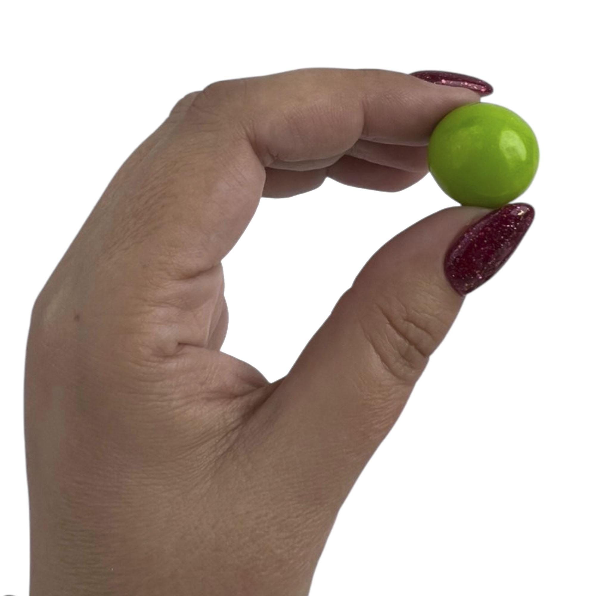 Диаметр 20-22 мм, допустимые отклонения от размеров (диаметр) шарика жев.резинки до 1 мм.