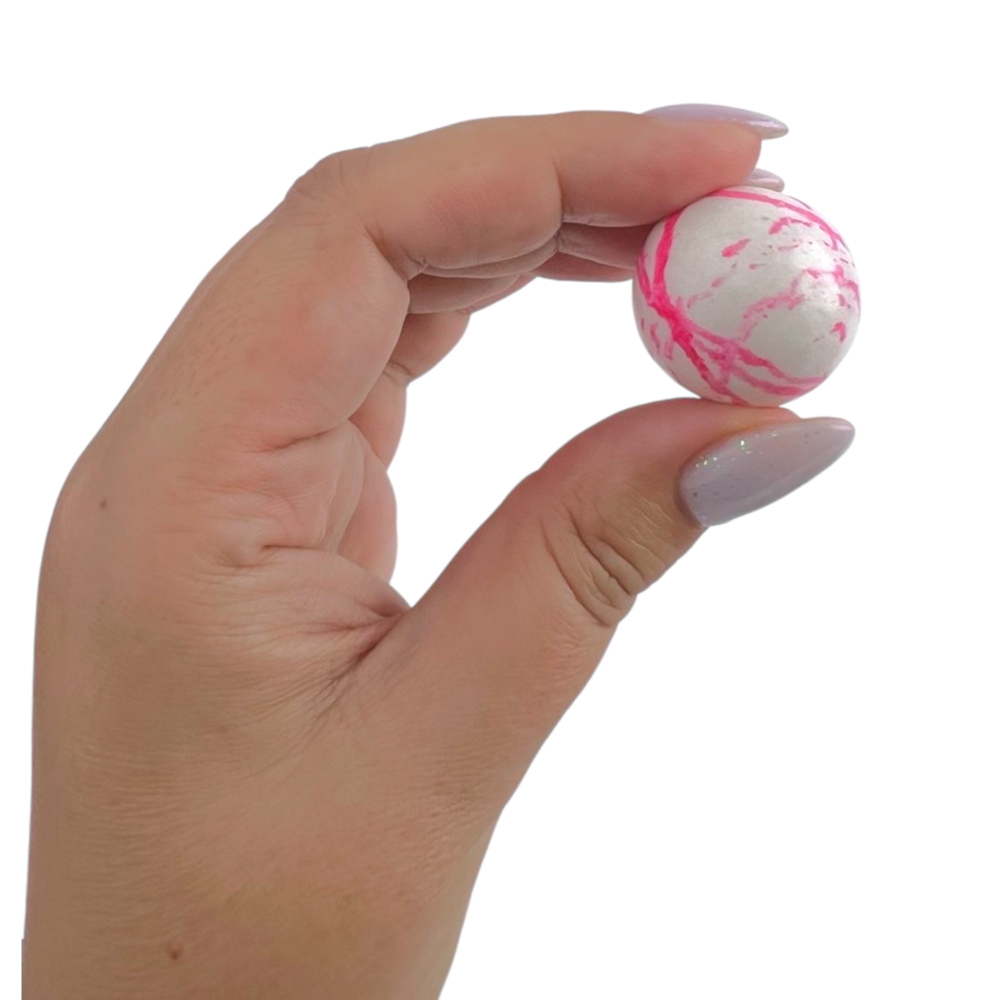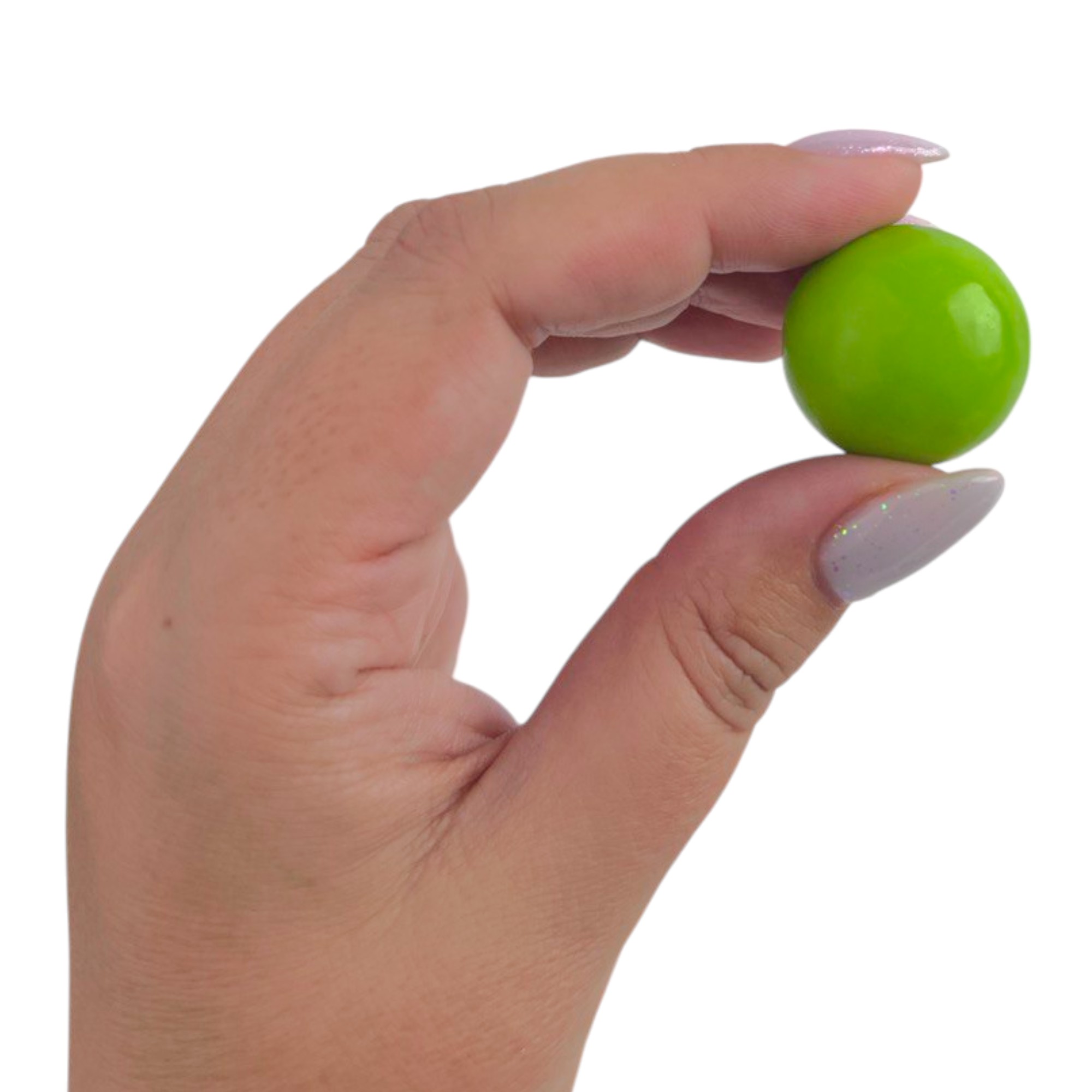 Диаметр 25-27 мм, допустимые отклонения от размеров (диаметр) шарика жев.резинки до 1 мм.