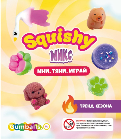 Дисплей с описанием серии игрушек Сквиш микс для вкладки в колбу торгового автомата.