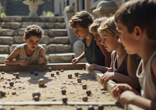 - На земле чертятся две линии, отделённые друг от друга расстоянием в три метра. Игроки встают у первой линии и стараются попасть камушком максимально близко ко второй линии.