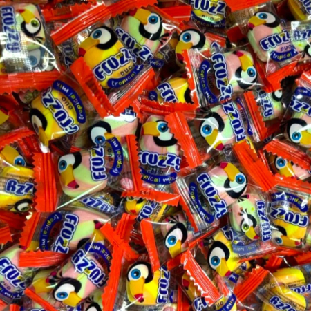 Жевательные конфеты с начинкой Фруззи Дуо микс -яркое лакомство, сочетающее в себе два слоя разных фруктовых вкусов: ананас, клубника, малина, апельсин, лимон, яблоко, вишня и ваниль.