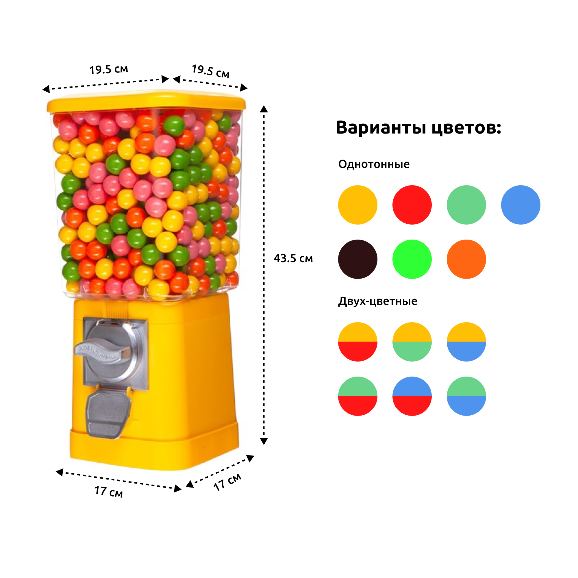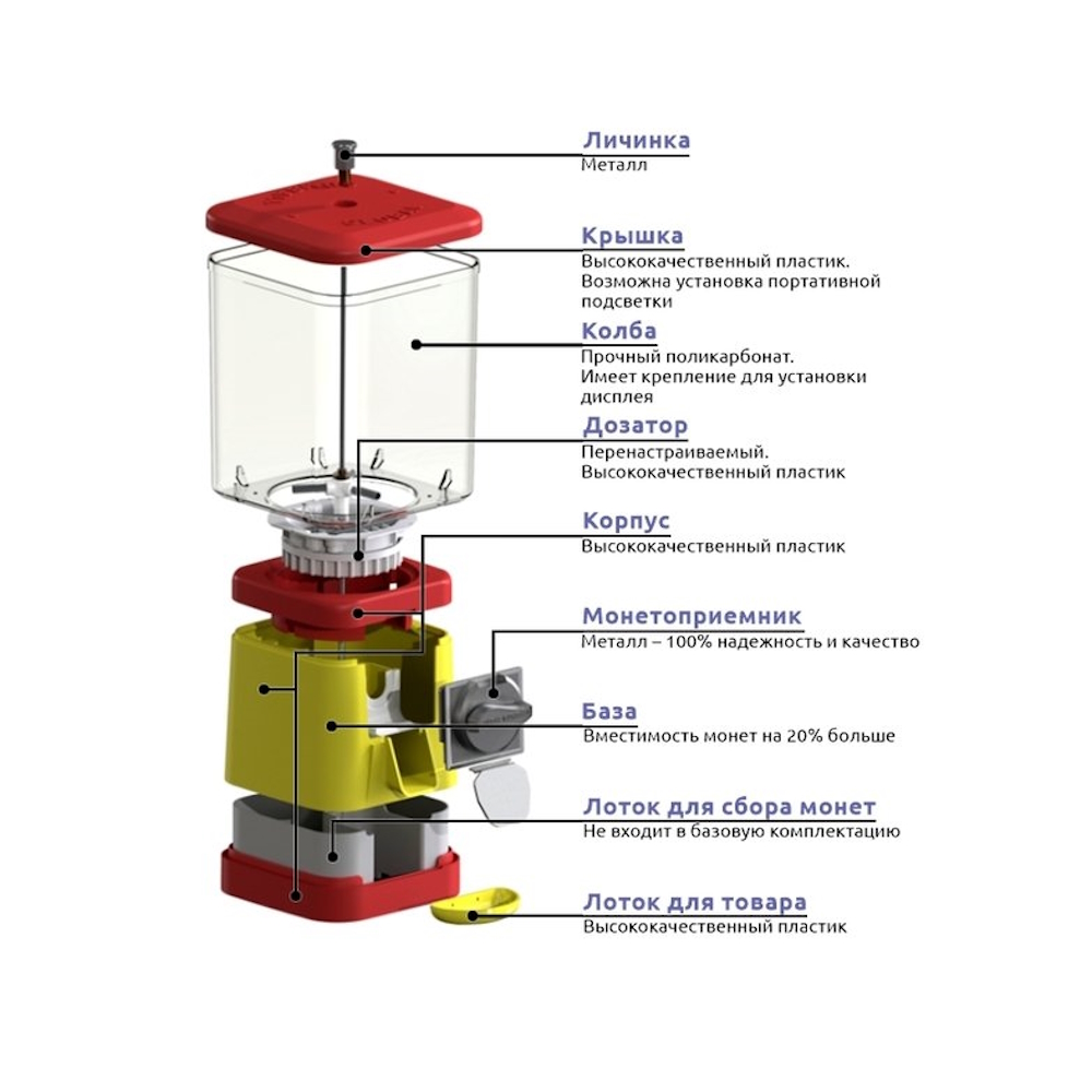 При заказе торгового автомата необходимо выбрать цвет крышки автомата и настройки монетоприемника.